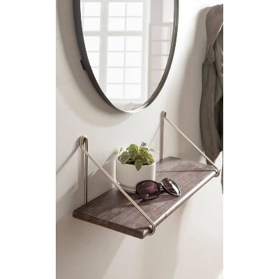 - MODERN DESIGN: The effortlessly stylish Palone shelf has a minimal design featuring polished silver metal brackets where the robust graywash-finished wood shelf sits