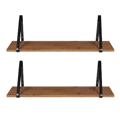Organize your home with minimalist refinement and sophistication by featuring the Soloman shelves on any wall. These warm open-concept shelves feature a base made from a blend of wooden material cradled within two iron brackets for secure mounting. Each tier also has a rustic brown finish on the base with a sleek black finish on each of the metal brackets, giving the Soloman collection a transitional look. The overall dimensions of each shelf are 27.5 inches wide by 6.5 inches deep by 8.25 inches tall, making them perfect for storage and display. The identical nature of this set makes it ideal for displaying the two shelves on their own or together in a side-by-side or vertical orientation. The styling options for the Solomans are endless: use them to create a coffee bar or open-concept pantry, a toiletry shelf, an accent display, or even a mini bookcase. Whether you mount them in your bathroom, kitchen, living room, or kitchen, you won’t have to worry about complicated assembly thanks to the quick process and pre-drilled bracket holes that make installation a cinch.