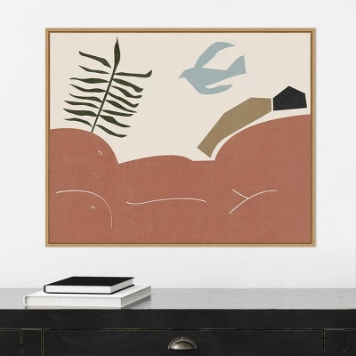 - FRAME DETAILS: The canvas is framed in the Sylvie Maple frame, which is a modern, float frame with natural maple woodgrain coloring and dramatic depth. The frame measures 1 in. wide and stands 2 in. off the wall. The canvas appears as if it is floating in the frame because it has a narrow gap between the edge of the canvas and the frame. The overall size of this framed canvas print measures 28 in. W x 23 in. H.
