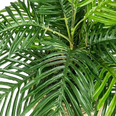This Phoenix palm planted in a tri-color decorative wicker basket stand will add a natural pop of color to any room. Measuring 32 inches in height, this plush palm is perfectly place next to your existing furniture as an accent item. The lush green color will never fade and is easy to maintain.