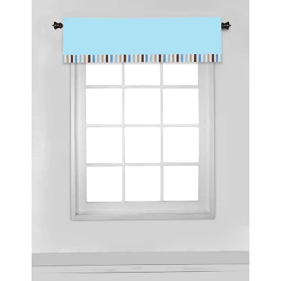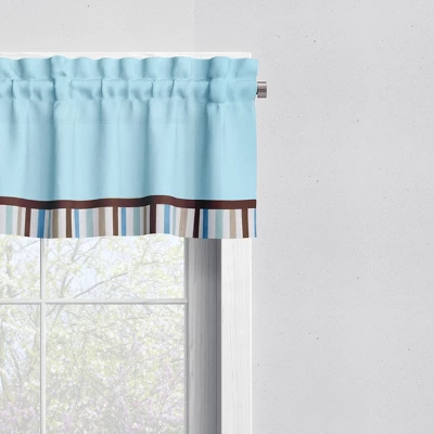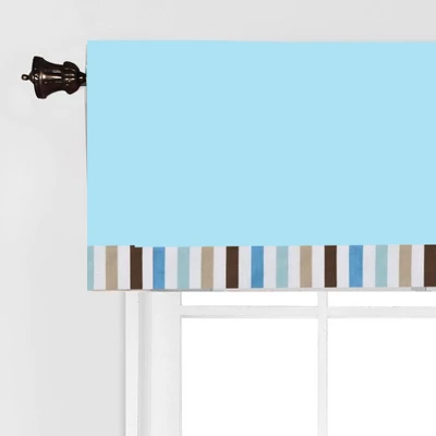 Add the finishing touches to your nursery with this Bacati Window Valance. Cotton rod pocket window valance features a signature, in house designed, signature print. The top panel of the valance has room makes for easy hanging with up to 1.75 inch opening for a curtain rod. The valance measures 54 by 15 inches and fits a standard size window. 100% cotton valance is machine washable and dried in a tumble dry. Coordinates with our Bacati Signature Collection.