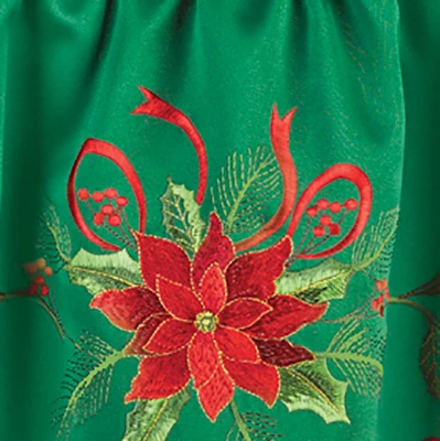 Top any window for the season with this colorful poinsettia valance. Featuring bold, embroidered poinsettias accented with evergreens, berries and red ribbons, the valance is finished with intricate cutwork along the scalloped edges. A rod pocket top makes hanging easy. Machine wash. Polyester; imported. Valance is 16 1/2″L x 58″W. Choose: White or Green.