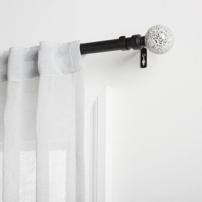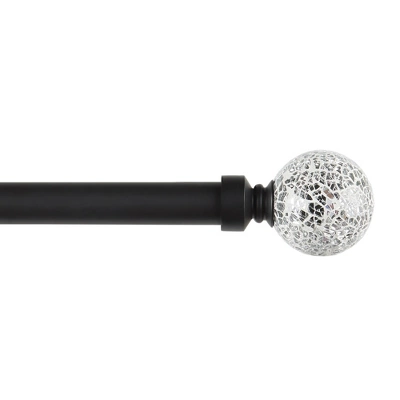 The Exclusive Home White Mosaic curtain rod and finial set offers high-fashion style and adds just the right amount of glamor and sparkle to your window decor with its textured, glass-look finials and durable iron rod. The adjustable rod measures 1″ diameter and can be used to hang various fabrics and drapes including grommet top curtain panels, drapes with rod pockets and back tabs. Mounting hardware, brackets, and instructions are included.