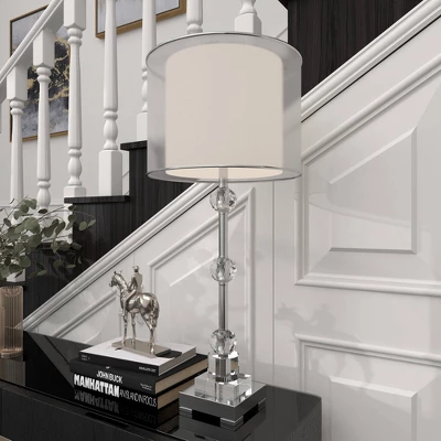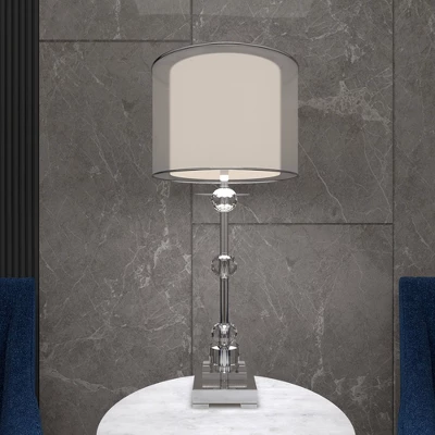 Glass Table Lamp With Drum Shade Silver – Olivia & May
