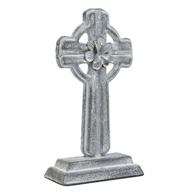 Uplift your space with this authentic cross decorative accent. Made from heavy cast iron in a matte charcoal finish with distressed white washing over the top to accent all the small, embossed details. The cross features a delicate floral at the center, making this an elegant piece that pairs well with traditional and cottage decor styles. A great way to add some dimension to your mantel, bookshelf, or tabletop display.