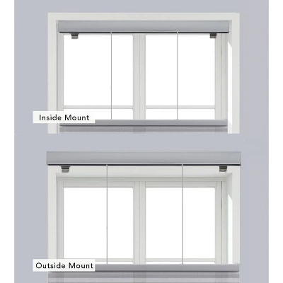 - | MOUNTING OPTIONS | Our cordless roller shades are easy to install and use. Compatible with inside or outside the window frame mounting. The mounting brackets can be screwed into the wall or ceiling. Features hidden mounting brackets. For an outside mount, we recommend adding 4 inches to the width when ordering.