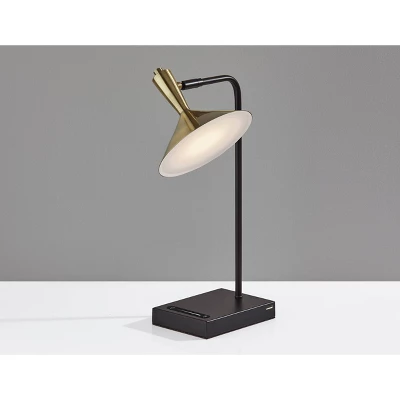 The Lucas LED Desk Lamp is high powered, high-tech, and high functioning with amid-century modern look that you won’t find anywhere else. Complete control of the light intensity and color allows you to customize the light to your needs at any time of the day. Whether you are working, reading or relaxing, the 5 light color temperature modes provide you with various options to suit your environment and mood. The color of the light is controlled by a sleek touch switch located on the base, which is also used to adjust the light intensity offering a full range of brightness options. A matte black finish mixed with antique brass accents elevates the look. A convenient USB charging port located in the base lets you charge up your devices while you work. An adjustable shade allows for 400 lumens of flicker free, energy efficient LED light to reach any area of the workspace. All Adesso lighting product is either UL or ETL listed, meaning that it has been tested and approved to meet the government-regulated safety standards for the USA.