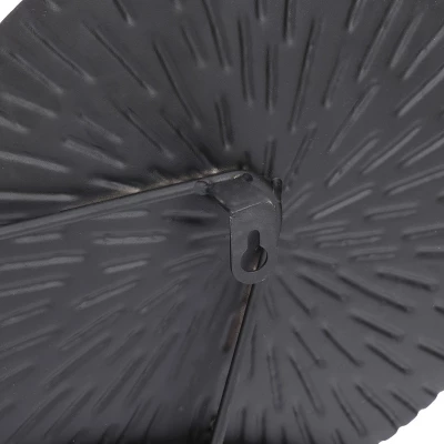 This beautiful abstract wall decoration will be perfect for the entrance, bedroom, and living room. The one-piece wall decoration is handcrafted using quality iron metal and features eight various-sized round plates layered to create a dynamic shape. The rich black finish against the backdrop of stamped short lines streaming from the center gives this art piece depth and dimension. The deliberately distressed border reveals gold accents, which adds a sense of high fashion. Bring a unique statement piece into your space to make a stylish flair to your decor with this 8-plate wall art. It is a beautiful artistic statement for any living space in your home. It hangs easily using hardware already included.
