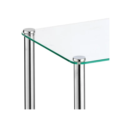 - Shelves made of glass; Steel legs with non-slip feet