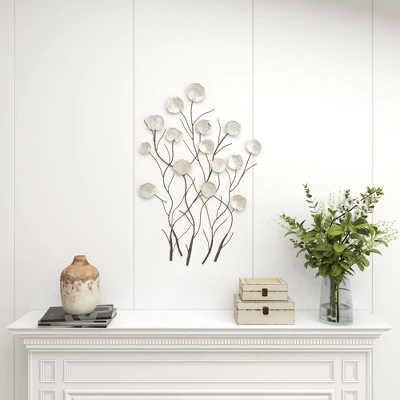 - •Large metal wall decor tree with wavy branches and features natural opalescent Capiz shells that is one of a kind shells, exact shapes and hues may vary