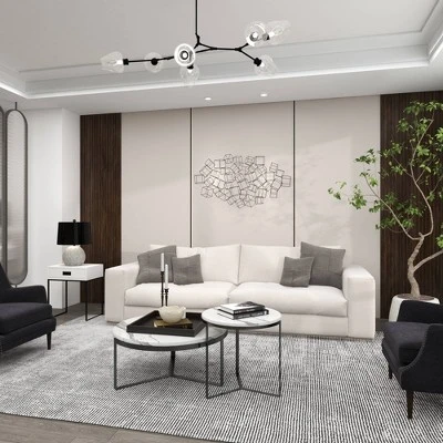 - •Designed with an ‘abstract-style’ collection of overlapping 3D square cube figures in white-black finish