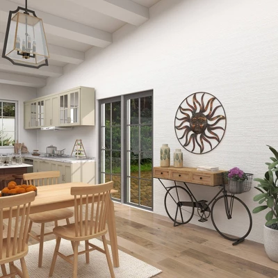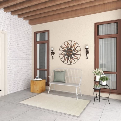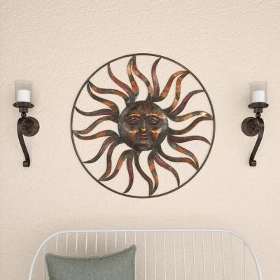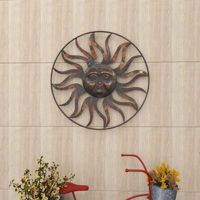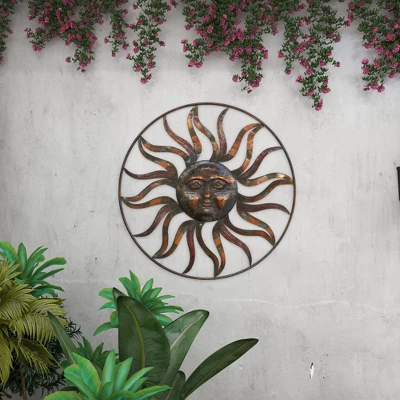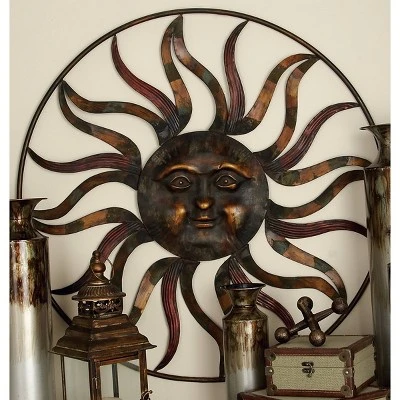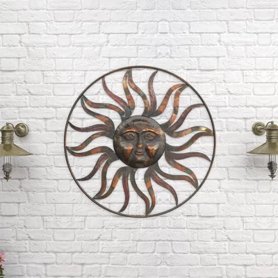 - •Metal material of this circle wall decor is carved to create detailed sun face