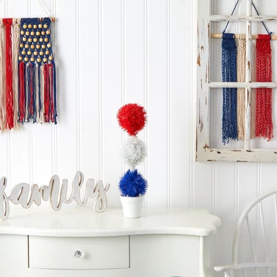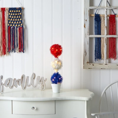 Want to show your love for the flag? Display your patriotic colors with this Americana topiary plant. Three circle topiaries in the colors of the American flag are nestled between 35 warm LED lights. Show support for the brave men and women with this colorful accent that can be displayed year-round or for special holidays such as Memorial Day, 4th of July, or Veterans Day. Standing 18′ from a white planter, house in a living room during a party, kids’ room, or office, makes a great gift to a member of the armed forces. We guarantee it will be a showstopper. Battery Operated. Silk plants are manufactured using synthetic materials, such as polyester material or plastic, and are well designed and constructed to be life-like in appearance. This item will need to be re-shaped when removed from the secure box to allow it to reach its fullest size. Your artificial plant will look beautiful for years to come; simply wipe clean with a soft dry cloth when needed. About Nearly Natural Inc. – For over 75 years, Nearly Natural Inc. has been providing conscientious consumers with beautiful alternatives to natural decorations. Employing and advised by naturalists who understand the live plant world, Nearly Natural is able to recreate the most realistic-looking decorative items for homes, offices, and businesses. Driven by a true commitment to customer service, attention to detail, and natural philosophy, Nearly Natural strives to bring customers the most beautiful, unique, and striking faux plants and floral on the market.
