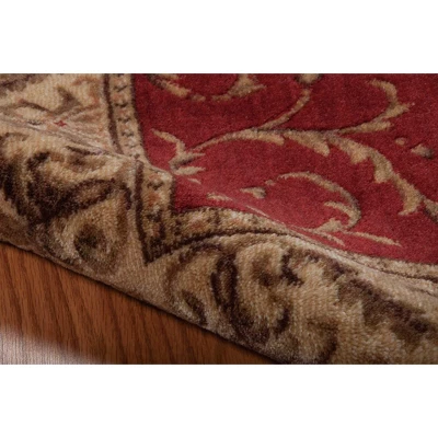 Leaves, vines and botanicals gracefully entwine in this sophisticated study of rich crimson and cream with delicate olive and chocolate brown accents. This plush pile rug is furnished with a fabulous sheen for exceptional tone and detail.
