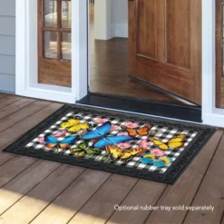 Briarwood Lane Checkered Butterflies Spring Doormat Floral Butterfly Indoor Outdoor 30″ X 18″