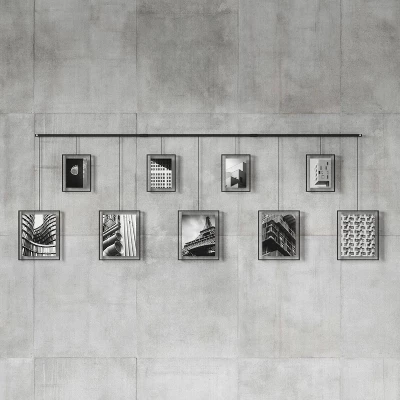 - MULTI-PHOTO WALL DISPLAY: Display your favorite photos in an eye-catching fashion using these nine hanging, gallery-style frames suspended from a modern and sleek beam; features five 8×10 and four 5×7 picture frames
