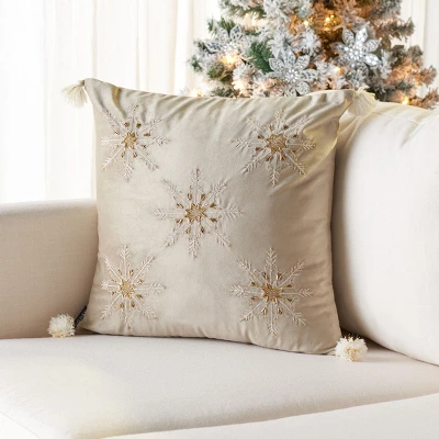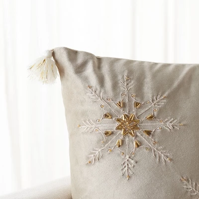 Simone Snowflake Pillow – Beige – 18″x18″ – Safavieh