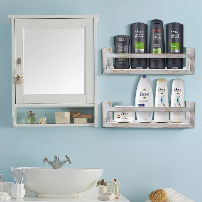 - STURDY DESIGN Strong enough to hold your favorite small objects Rustic distressed style shelf (with crossbar for extra security) Made of 100% Solid Wood Neutral color Comes assembled and ready to hang Set of 2 Approximate measurements Measures approximately 16.2 L x 4.6 W x 4.5 H