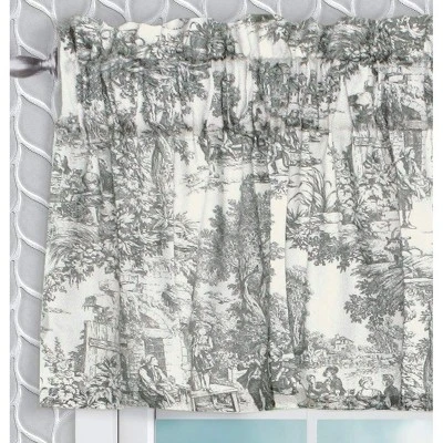 Victoria park toile water proof room darkening blackout tailored valance by Ellis Curtain goes way beyond just looking great. Toile print fabric originated in France in the 18th century and immediately became a popular decorating pattern that still holds true today. The classic country scenes and soft cotton fabric will change and improve the look and feel of any room while adding a touch of style. Made with 100% cotton creates a smooth draping effect and softer texture that can’t be achieved with inferior synthetic fabrics. You are sure to get a Valance. thatÂ’s beautiful and functional in a decorating pattern that’s timeless and long-lasting. The Tailored Valance. is constructed with a 3-inch rod pocket and a 2-inch header. Available in Gray, and Red color. Measures: 70″ x 12″
