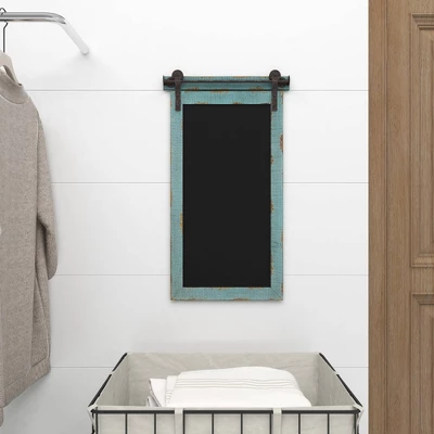 Position this wooden wall decor above a desk, end table, or shelf, so it’s easy to access. This item ships in 1 carton. Features a rectangular chalkboard with matte black finish. Can be hung vertically using the keyholes on the back; nails and screws not included. Suitable for indoor use only. This item ships fully assembled in one piece. This is a single blue colored wall sculptures. Farmhouse style.